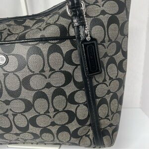 Coach Black/Grey Coated Canvas and Leather Peyton Signature Pocket Tote Purse