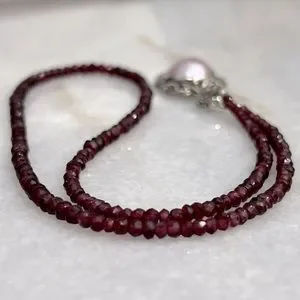 Cones with 18” sterling silver Orissa Rhodolite beaded necklace