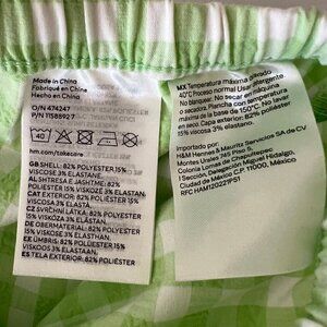 NWT H&M Green & White Gingham Picnic Drawstring Skirt