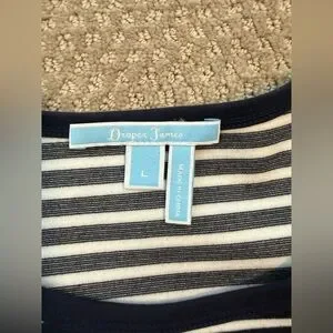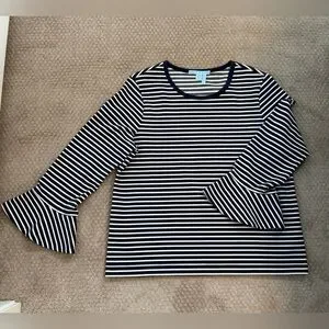 Stylish navy and white stripes. Flared bell long sleeves. Perfect for casual wear.