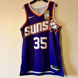 Men's Nike Suns jersey. Bold purple with orange accents. Features team logo and number 35.