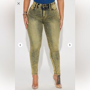 Fashion Nova Yellow Acid Wash Skinny Jeans