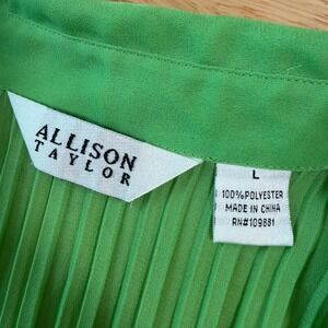Allison Taylor Womens Lime Green Pleated Ruffle Bell Sleeve Blouse Large