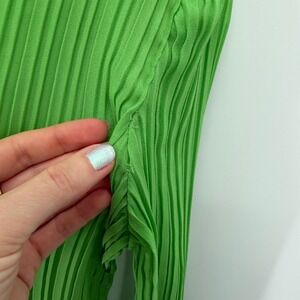 Keywords: Lime Green, Pleated, Accordion, Ruffle, Bell Sleeve, Peplum, Sheer, Whimsigoth, Fairycore, Y2K, Vibrant, Chiffon, Textured, Dressy, Spring