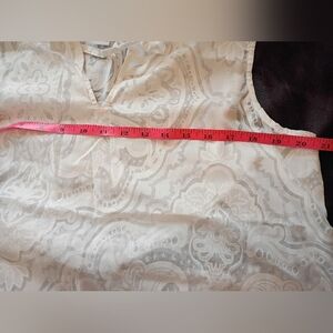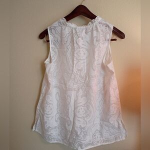 liz claiborne white shirt sleeveless top sheer lace pattern size large casual
