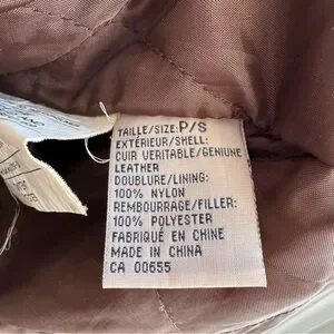 Excellent condition. Really cool statement jacket. Structured high collar. Zip and snap front closure. Layered storm flap detail. Zip pockets. Cinched elastic waist. Naturally distressed, worn-in patina giving beautiful character. Fully lined with quilted nylon interior. Genuine leather is marked professional clean only.