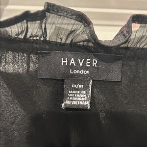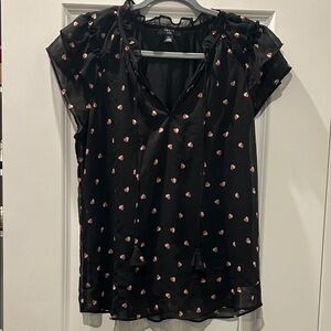 Haver V Neck Sheer Black Blouse with Pink Heart Accents Women’s Size Medium