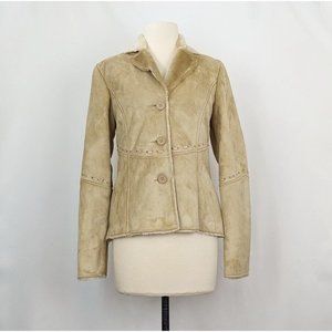 Vintage Y2K Coat Tan Faux Suede Fur Shearling Juniors Size M New