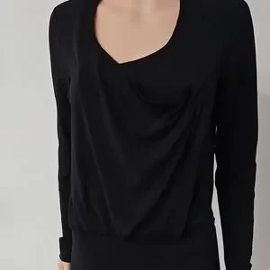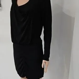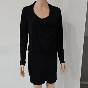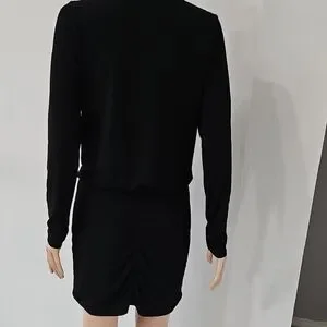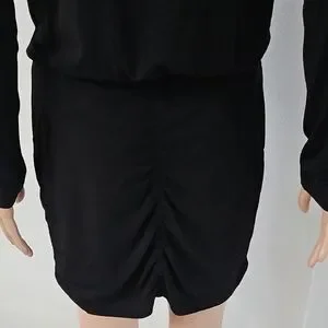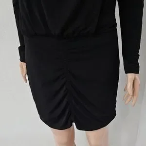 BCBGeneration Black Ribbed Ruched Long Sleeve Sheath Dress