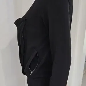 This sophisticated black sheath dress by BCBGeneration features a ribbed texture and ruched detailing, perfect for work or cocktail events. The long sleeves and v-neckline add a touch of elegance, making it a versatile addition to any wardrobe. In Excellent Condition.