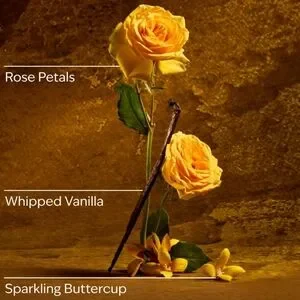 Exclusively fragranced soy wax candle with a Belle from Beauty & the Beast theme. Rose Petals, Sparkling Buttercup & Whipped Vanilla scent. 14.5 oz, 3 wick candle.
