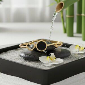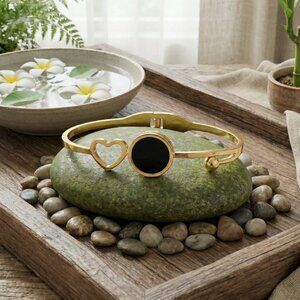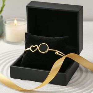 18K Gold Plated Stainless Steel Bangle Bracelet Heart Black Charm Minimalist
