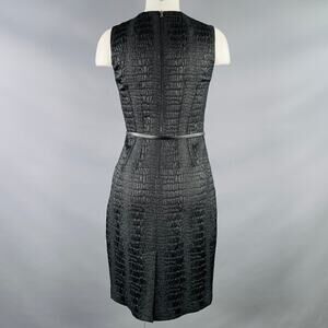 ELIE TAHARI dress in a black polyester blend fabric featuring a sleeveless style, textured design, and back zipper closure with belt.