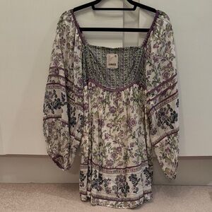 New with tags, ivory and purple Free People dress with sleeves. Can be worn on or off shoulder.