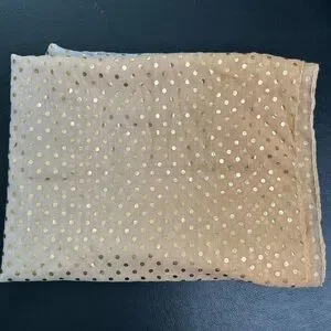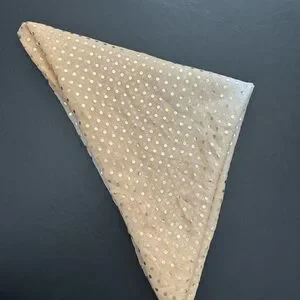 Elevate your style with this chic gold polka dot scarf. Perfect for adding a touch of elegance to any outfit.