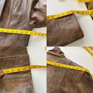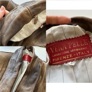Vintage 90s Vera Pelle Leather Jacket | Distressed Brown Shawl Collar.