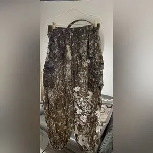 Stylish brown joggers with floral pattern. Comfortable fit. Perfect for casual wear.