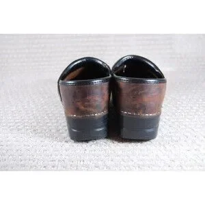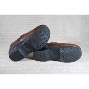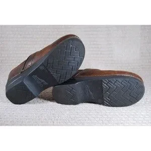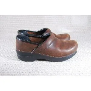 These Dansko Women's Professional Antique Brown Oiled Leather Clogs are a stylish and comfortable option for casual, travel, or workwear occasions. Featuring a slip-on closure, low heel height, and round toe shape, they are designed for all-day comfort with a leather upper and lining. The solid brown color and leather outsole make them versatile for wearing year-round. Perfect for walking or working in a professional setting, these clogs are part of the Dansko product line and are sure to be a reliable addition to any wardrobe. Good preowned condition with scuffs/scratches from wear (use zoom to view all pictures and measurements) - color tones may vary depending on your monitor/device settings. Fast shipping!