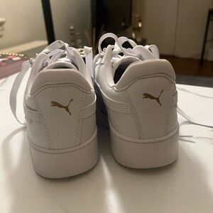 Chic Puma sneakers in white with elegant gold details. Ideal for everyday style.