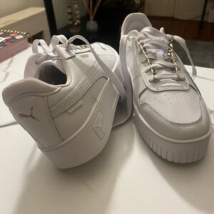 Puma White and Gold Casual Sneakers