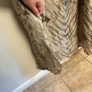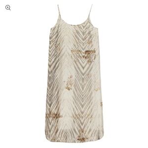 Eileen Fisher 100% Silk Slip Maxi Dress Beige Brown Shibori Print Size Large