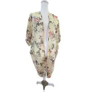 LIVE 4 TRUTH SHEER kimono YELLOW FLORAL SWIM COVER WOMENS ONE SIZE