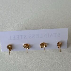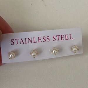 NWT Set of 2 Round Imitation Pear Stud Earrings, gold tone