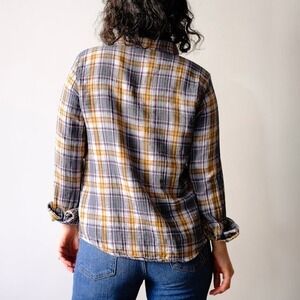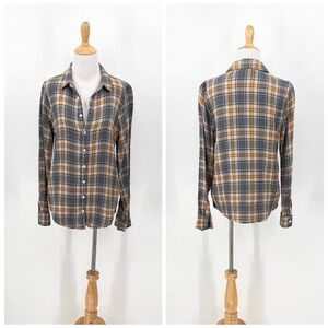 CP SHADES Romy Plaid Shirt Womens XS Gray Yellow Gauze Button Up Long Sleeve