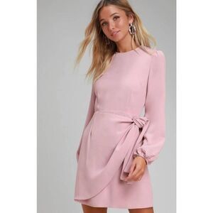 LULU'S Believe It Or Knot Long Sleeve Tie-Front Skater Dress Size Small