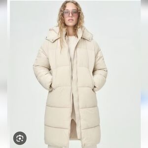 H&M Womens Long Cream Puffer Hooded Coat Size XS