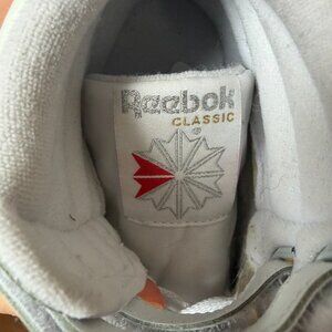 Reebok Classic White High tops with two velcro straps. Very minor wear on soles but otherwise in good pre-owned condition.