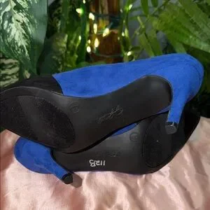 Sophisticated heels with a bold blue and black design. Perfect for elevating any outfit.