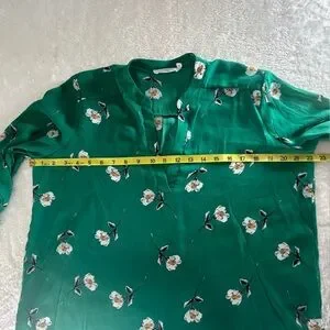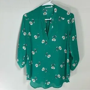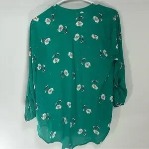 Lush Green and White 3/4 Length Sleeve V Neck Floral Lightweight Blouse Size M