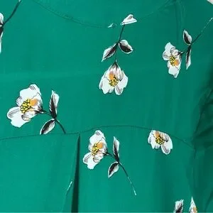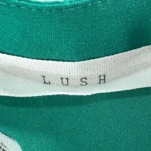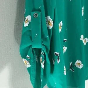 Elegant LUSH green and white blouse with floral pattern. Features a V-neck and three-quarter button up sleeves. Lightweight and flowing for a comfortable fit.