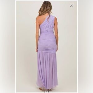 NWT Pink blush Ruched Mesh One Shoulder Maxi Dress lavender M