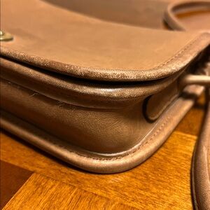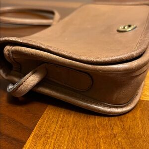 Discover the elegance of this tan leather women's bag, perfect for any occasion. Its sleek design and quality craftsmanship make it a must-have accessory. Vintage coach light brown crossbody small cute bag! Super soft leather, some wear on leather, no rips, lock works fine, shoulder strap is strong! One zipper pocket inside. The serial number little faded, still can read the tag !