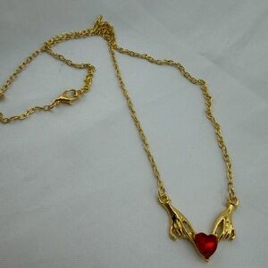 Gold Hands Holding Red Heart Necklace Romantic
