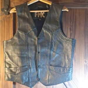 Elevate your style with the Black Leather Vest. Perfect for layering, this vest adds a rugged touch to any outfit. Crafted for comfort and durability. This is an old school leather vest.