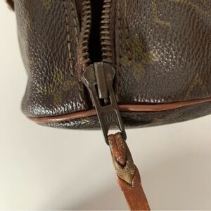 Zipper works. Zipper pull has been replaced and is a non-LV branded zipper pull. End of zipper on one side is starting to come apart. Can be fixed by stitching it back together.