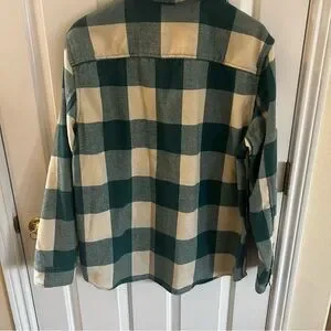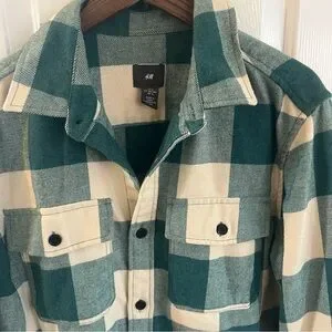 H&M Teal Green and Cream Plaid Felted Flannel Overshirt. Size Large.