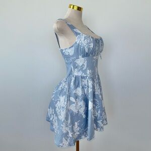 REFORMATION Daria Linen Dress Size 6 | Blue Floral