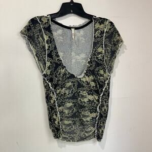 Free People Oh My Baby Ruched Animal Print Cropped Sheer Top Size XL