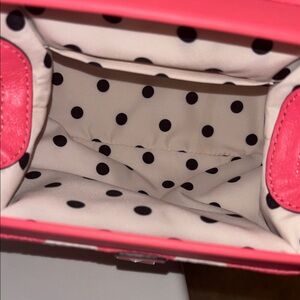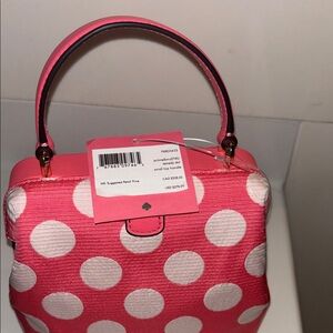 Chic pink mini bag featuring bold white dots. Perfect for adding a playful touch to your outfit.Strap for crossbody still has packaging Kate Spade pink dust bag comes with it and her card I bought from posher @tsplace . She has never been used