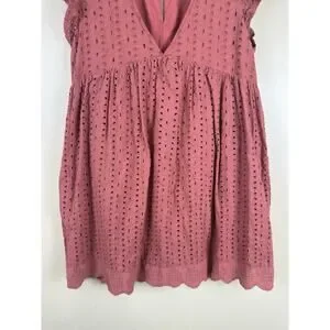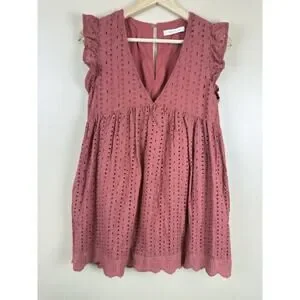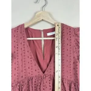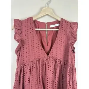 Mustard Seed Rust Eyelet Romper Dress Women’s S Terracotta Ruffle Boho Playsuit