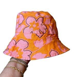 Faithful the Brand Paraiso Floral Print Linen Bucket Hat Pink Orange Summer Boho