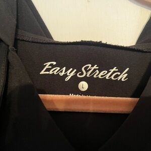 Stay comfortable and stylish with this black hoodie, scrub top.. Has an elastic waist and arm bands and a kangaroo pocket. Short sleeved. This brand is great. Very comfortable. Only selling bc it’s too big for me now. True black, no fading.