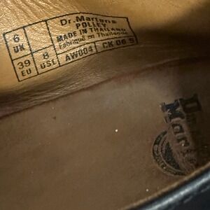 Dr. Martens Polley Mary Janes in black smooth leather offer a classic T-bar silhouette with a modern edge. Constructed with the signature air-cushioned sole and iconic yellow welt stitching, these shoes provide both durability and comfort. The adjustable buckle strap features antique-style hardware, while the rounded toe and low profile create a versatile look suitable for various styles from academic to grunge. Made in Thailand with a robust leather upper and oil-resistant outsole.