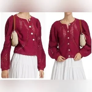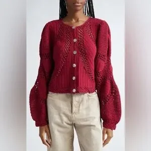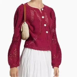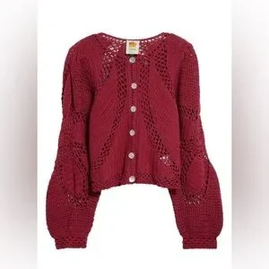 New! FARM Rio Flower Crochet Knit Burgundy Rec Cardigan ♥️ Small NWT!