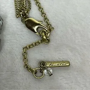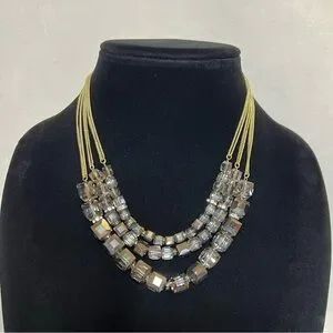 Kenneth Cole brand signed triple strand with clear and silver faceted crystal beads on gold tone chain. 15” adjustable length.