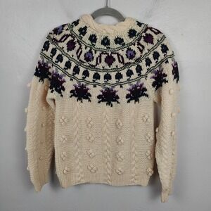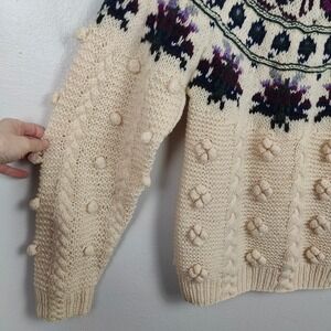 Vintage Woolrich Fair Isle Sweater Womens Small Cable Knit Popcorn Bobble Ivory